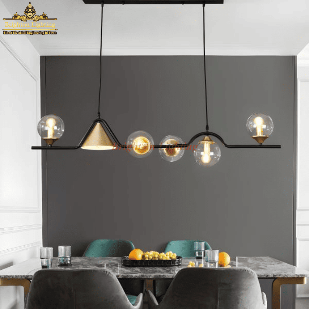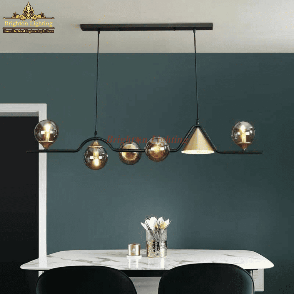 GS-DENGGE-C280/1320MM 5GLOBE + GOLD CONE HANGING LIGHT