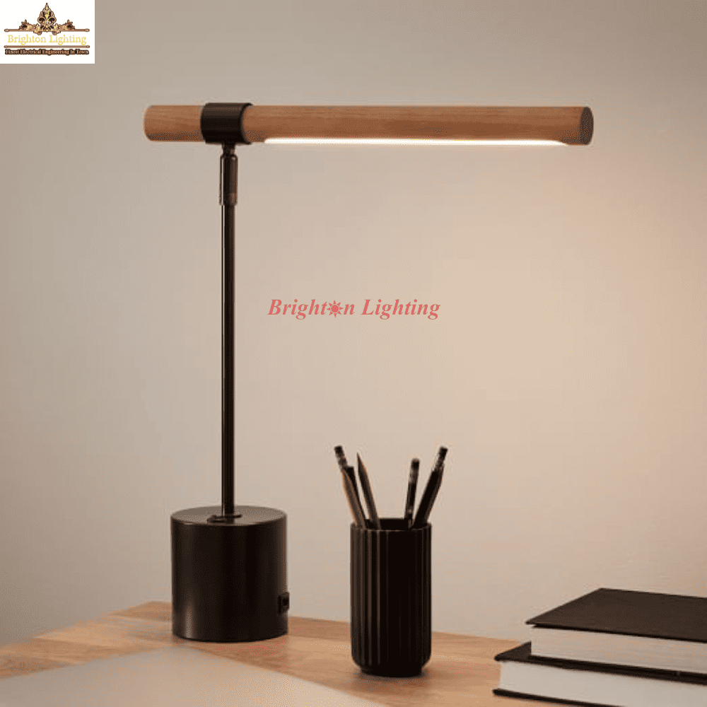 GS-DENGGE-24N14080/400*H450MM BLACK BODY WITH WALNUT WOOD TABLE LAMP