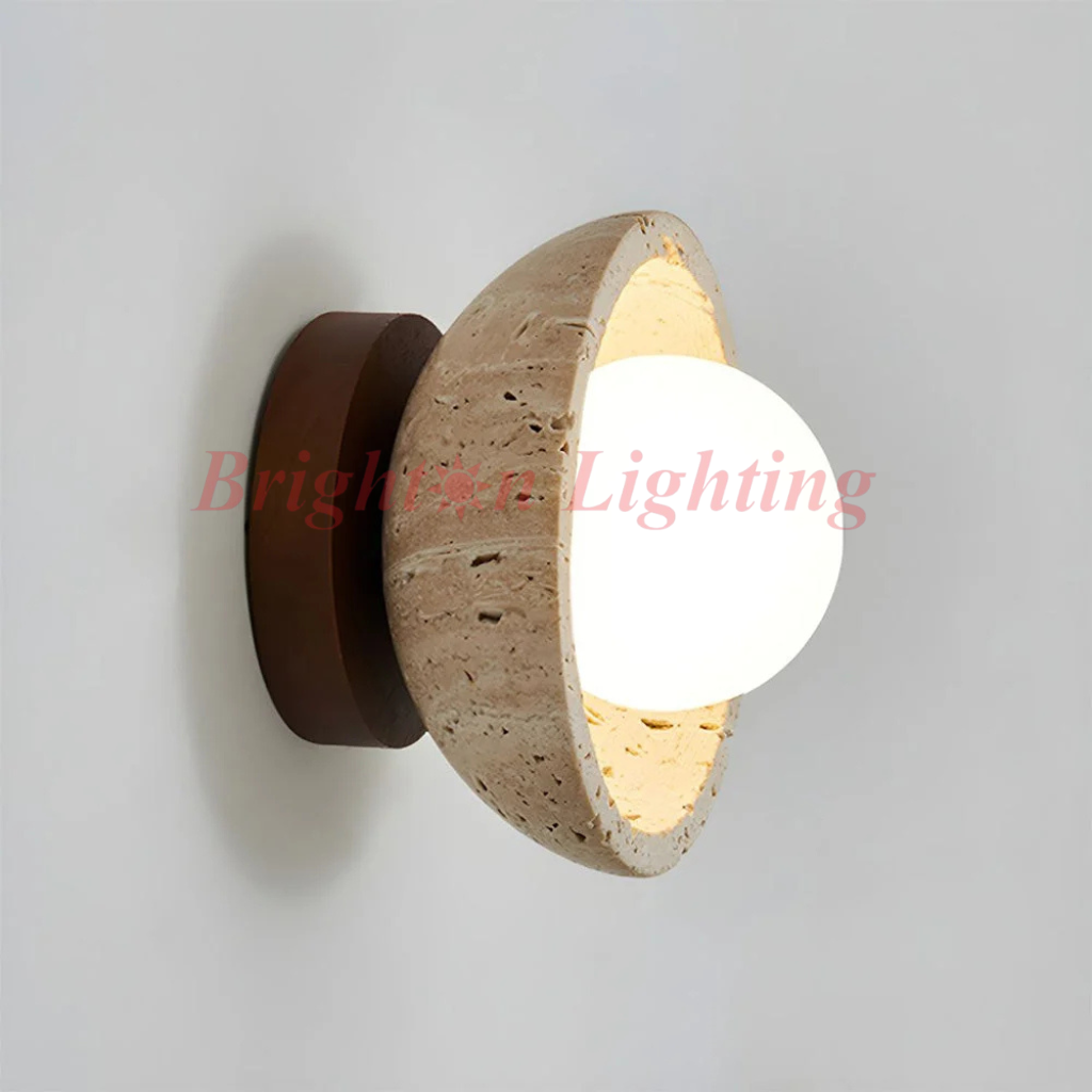 NATURAL STONE WITH WALNUT BASE CEILING LIGHT