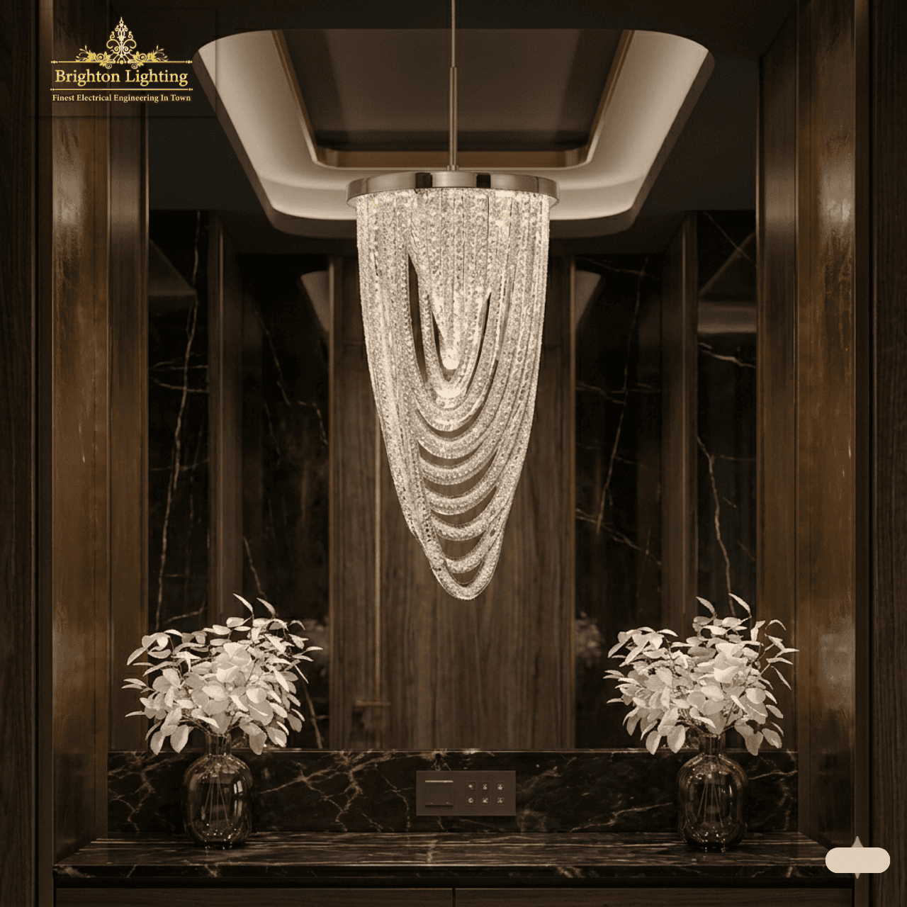 Versatile Application: The perfect statement piece for modern dining rooms, luxurious living spaces, hotel lobbies, and sophisticated powder rooms (as pictured).