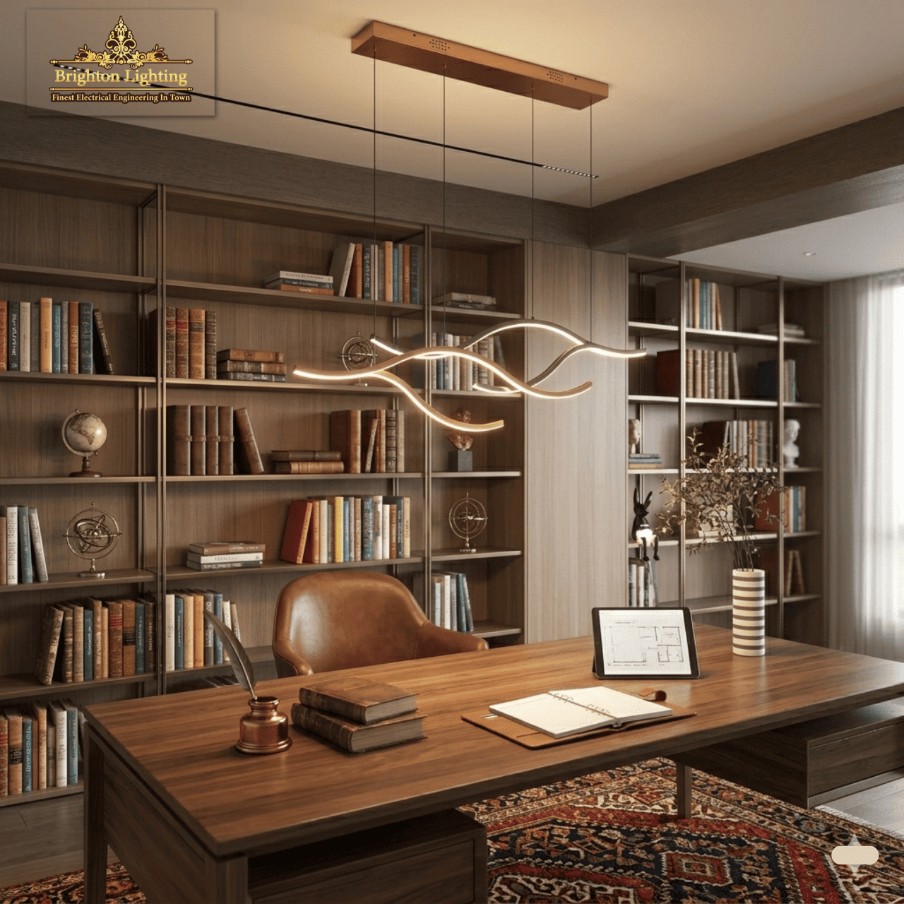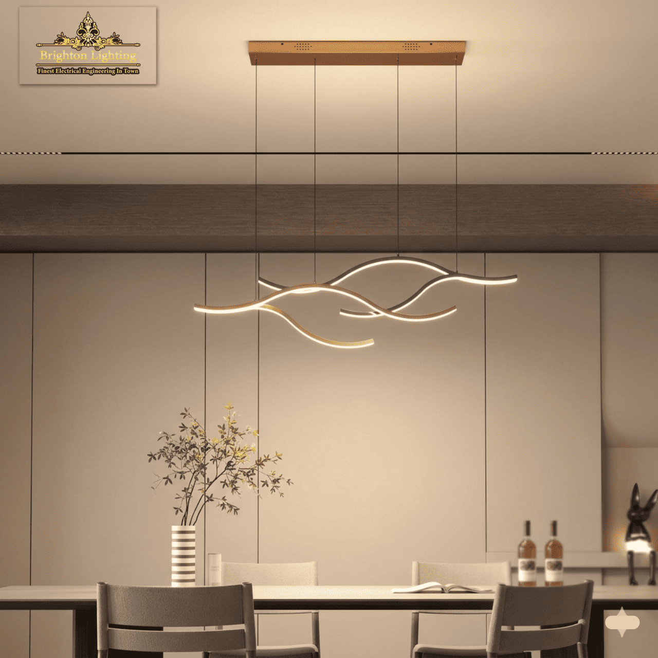 Add a touch of flowing, modern elegance to your home with this striking Wave LED Linear Pendant Light. Featuring a unique design of multiple interlocking curving lines, this copper-finished LED chandelier provides energy-efficient illumination in a sophisticated package. The sculptural form makes it a perfect central focus for a modern kitchen island, dining table, or contemporary office desk, casting a warm, inviting glow. Led pendant light